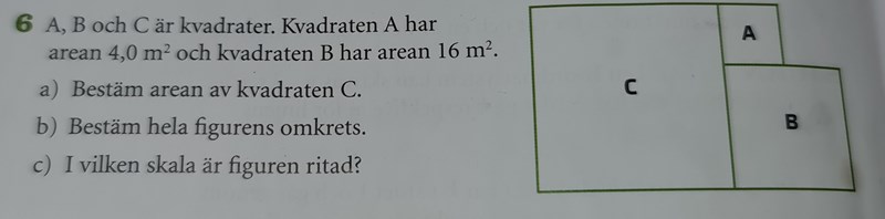 Bilden visar att kvadraten C har en sidlängd () som är summan meter vilket ger arean kvadratmeter.