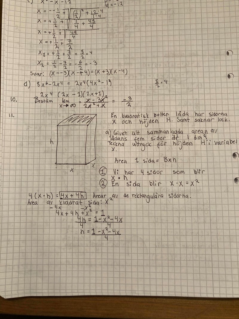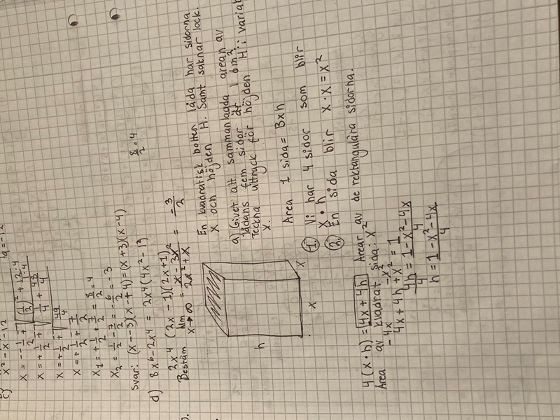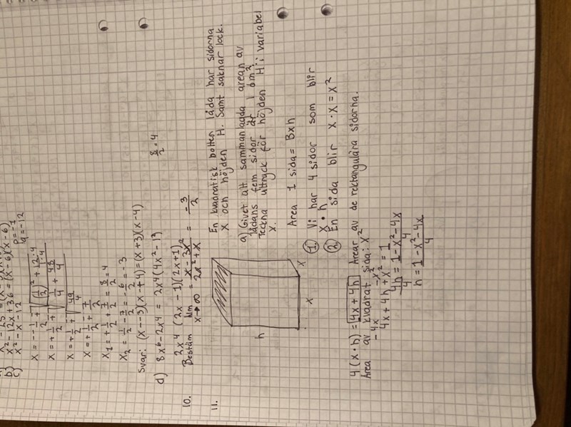 Hur vet inte viktigt hur jag ska tänka! I facit står det h=1-x^2/4x