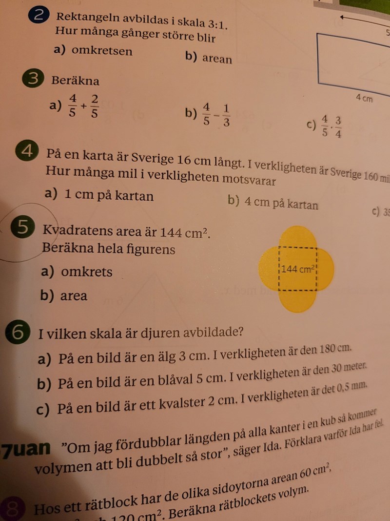 Kvadratens area är 144 cm², beräkna hela figurens a) omkrets b) area