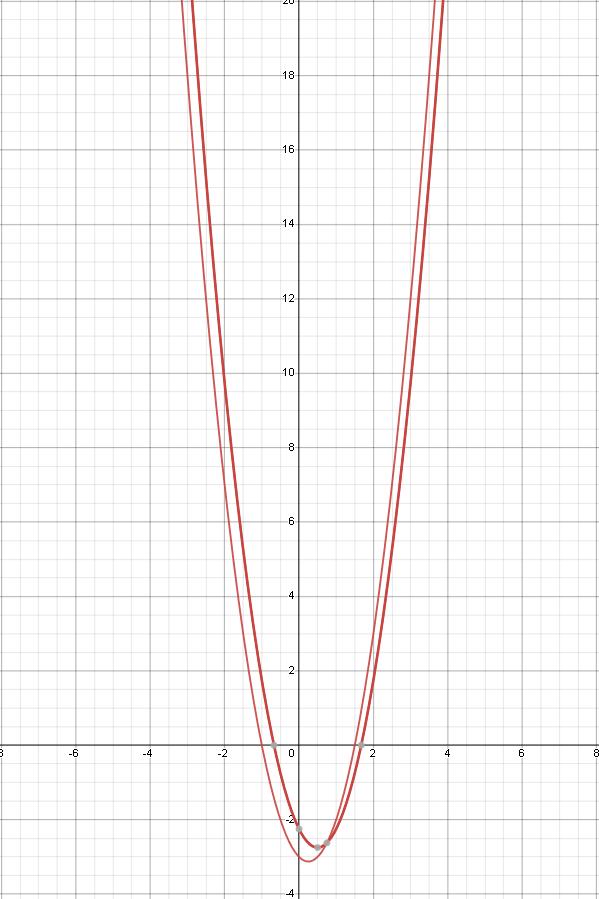 Jaha, du menar att det blir fel när jag skriver dit paranteser på rad 4 i uträkningen? För när jag skriver in rad 3 (där jag skrivit dit 0.5^2 och -0.5^2) i grafrääknaren verkar uttrycken vara ekvivalenta med varandra.