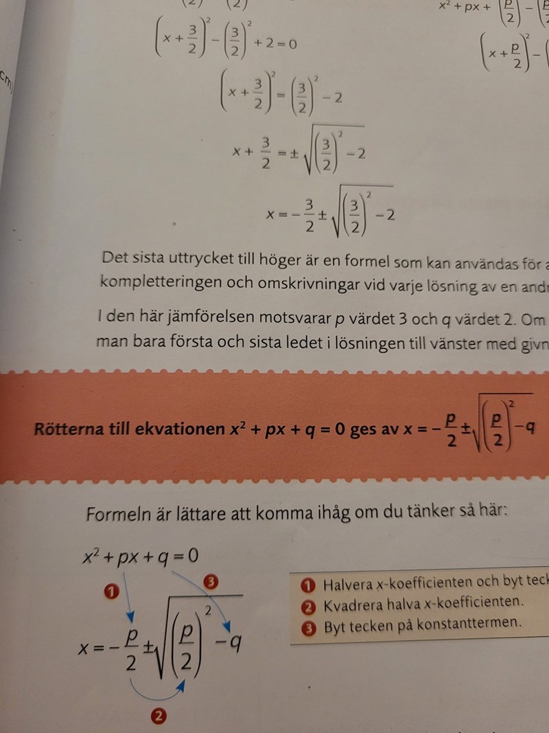 Pq-formeln börjar med -p/2 plusminus någonting.