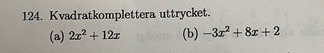 Vid läget kan man frestas att gå till för att underlätta kvadratkompletteringen. Det är iofs helt OK, men man måste då tänka på att man har bytt tecken på det uttryck man vill kvadratkomplettera.