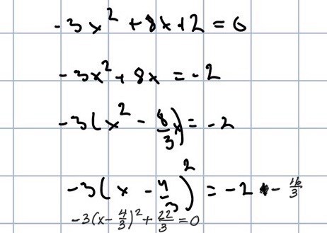 (B) Jag kommer inte fram till rätt svar som ska vara -3(x-4/3)^2+(22/3)