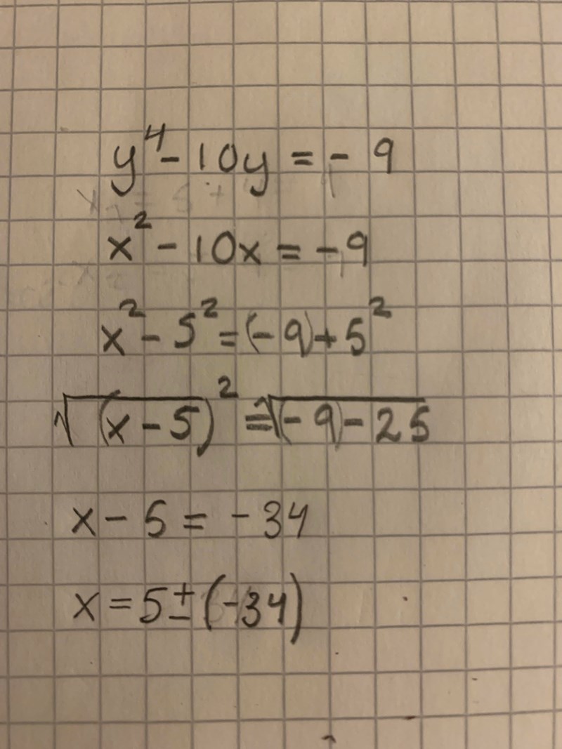 studystrawberry skrev:Bookworm skrev:Ledningen är att sätta x istället för y^2 och dvs x^2 istället för y^4 i ekvationen. Lös sedan som vanligt.