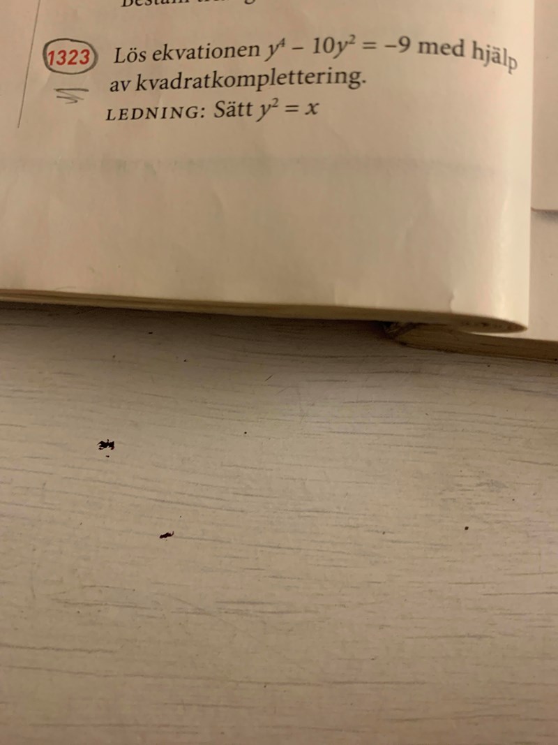 Ledningen är att sätta x istället för y^2 och dvs x^2 istället för y^4 i ekvationen. Lös sedan som vanligt.