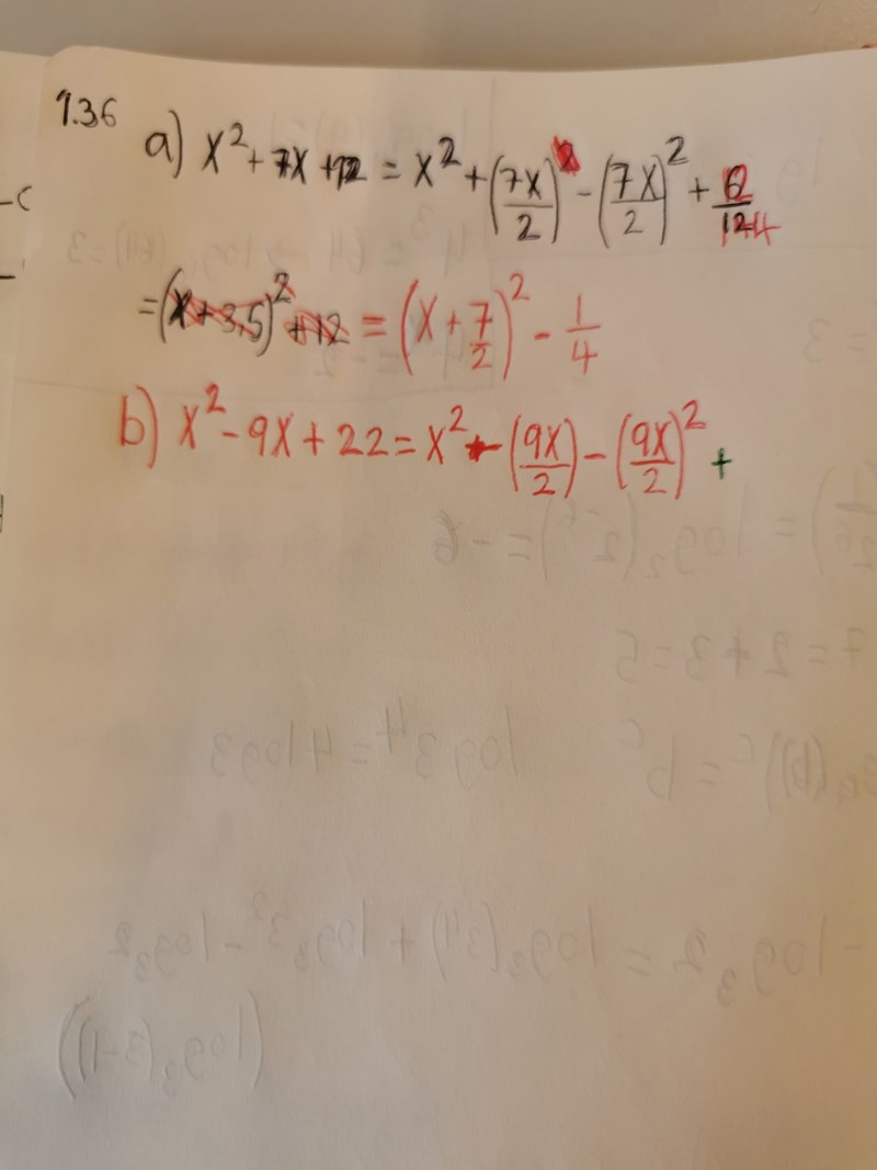 I b) ska det bli (x-9/2)² + 7/4 hur blir 22 till 7/4?