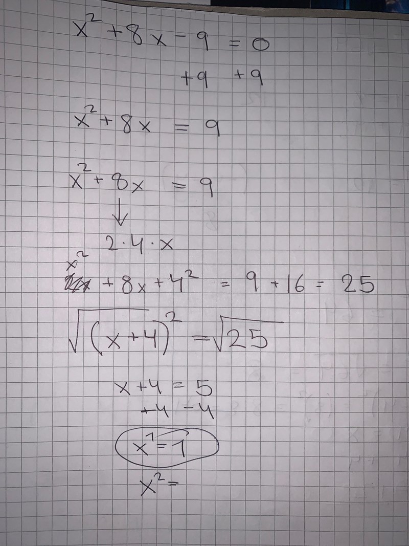 jahaaa nu förstod jag det är -9 så man ska alltid få plus minus på roten ur för att hitta både x1 och x2?