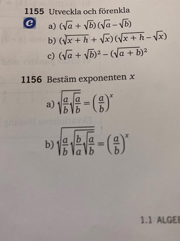 Hej! Har klurat på denna uppgift 1156 B ett tag men kommer inte fram till lösningen. Skulle uppskattats om någon skulle kunna förklara hur man löser den :D