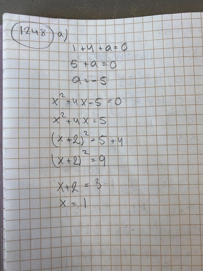 denna fråga ligger i kapitlet förre pq-formeln. Den ska alltså gå att lösa utan pq-formalen