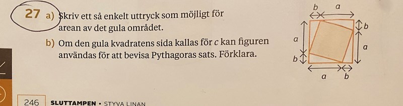 a2 + 2ab + b2 - 2ab = a2 + b2 är den gula kvadratens area.
