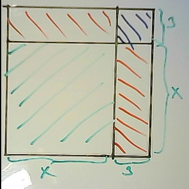den grönmarkerade har arean x*x, de rödmarkerade har arean 3*x och den blå har arean 3*3