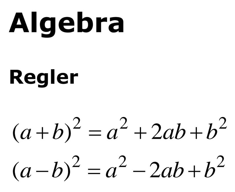 Det finns två kvadreringsregler. Från formelbladet Matte 2b hämtar jag detta: