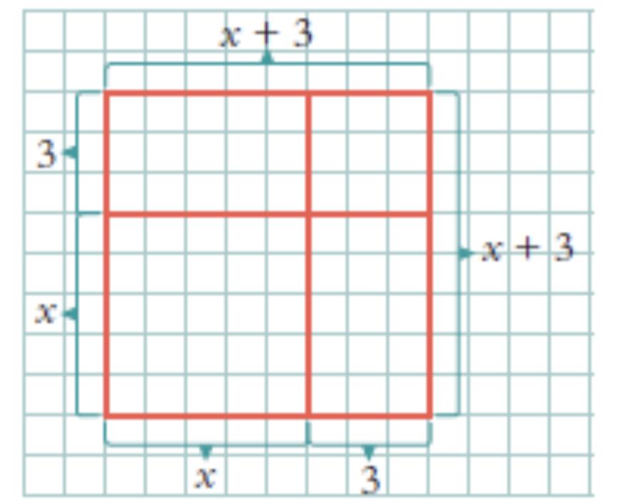 Delarna representerar utvecklingen x2 + 3x + 3x + 9.