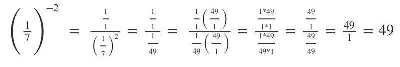 När man flyttar ner uttrycket under ett bråkstreck ska man tänka så som den andra uppställningen. att man flyttar ner 1/7^-2 under 1/1 så som och inte ?