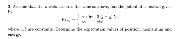Vågfunktionen ges av , där n=1,3,5 där är de standard stationära tillstånden.