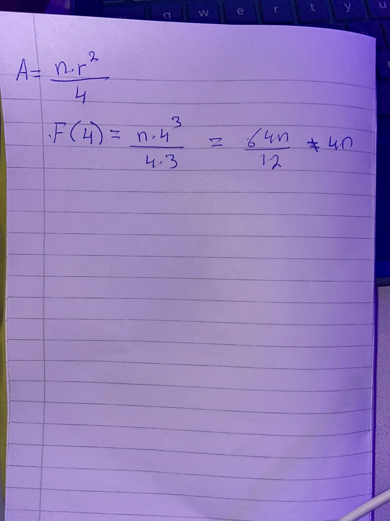 Men radien var ju 4 så arean blir pi * 16 / 4