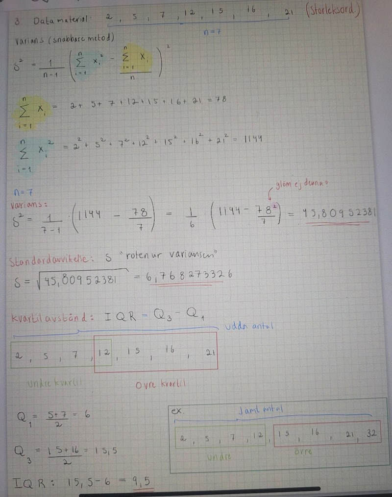Jag har en liten fundering gällande kvartilavstånd då man tar Q3-Q1, och jag har udda antal siffror blir övre och undre så som jag markerat?
