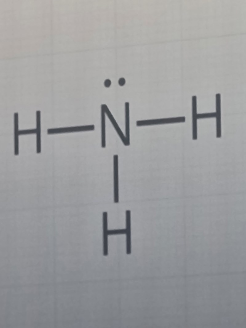 Streck motsvarar delade elektroner. Prickar motsvarar fria elektroner. Att det är två prickar menas med att kväve har två "fria" elektroner. Dessa tar också upp plats, så 3D-molekylen ser ut: