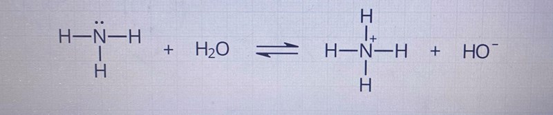 Det visar att ammoniumjonen har en positiv laddning, vilken den får då ammoniakmolekylen tar upp ett H+ från vattenmolekylen. Man tillför ju en extra proton men inge extra elektroner så det finns en proton fler än antalet elektroner i ammoniumjonen.