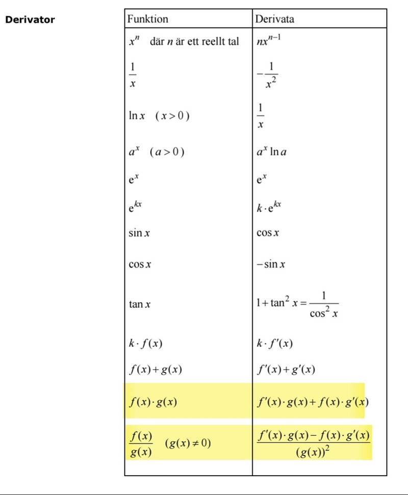 Behöver man kunna kvotregeln och produktregeln utantill eller finns det ett sätt där man kan se formlerna i formelbladet via kedjeregeln?