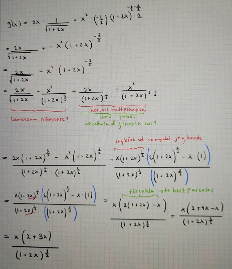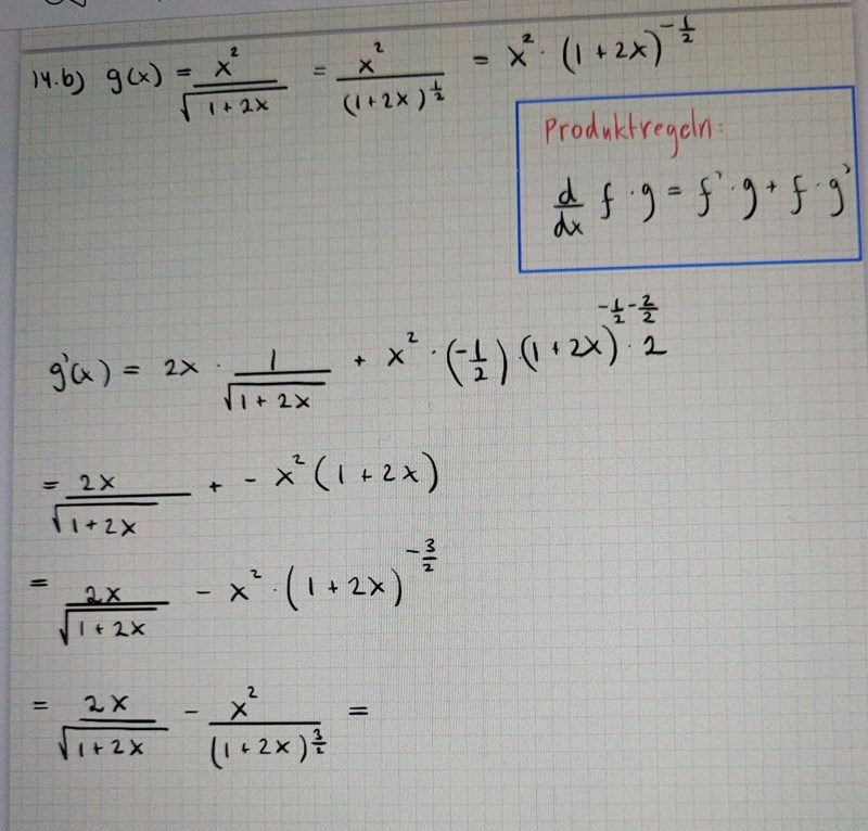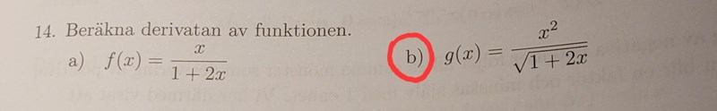 Denna uppgiften borde man kunna lösa med både produktregeln och kvotregeln.