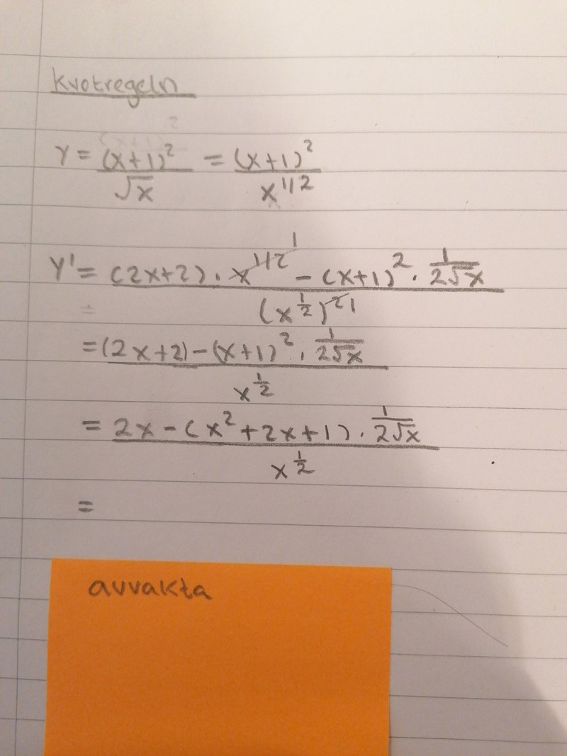 Det kändes ok med börja med kvotregeln, men sen lite krångligt att beräkna.