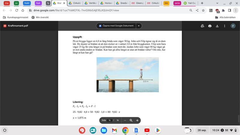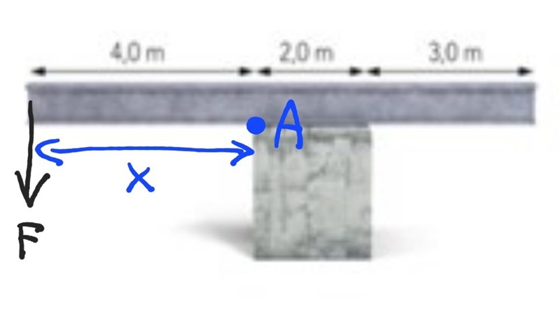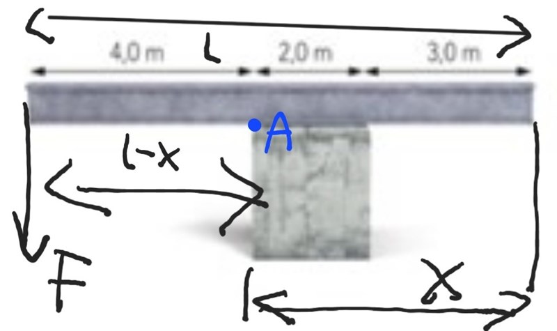 jag har märkt att när de frågar efter hur långt ut från momentpunkten han kan gå utan att den ska välta så kallas det för x, men när de frågar hur nära ändarna han kan stå så tar de l-x, alltså är x avståndet från momenpunkten till där något ska stå