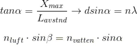 Tänker jag rätt att vinkeln som blir vinkel för att finna ljusets våglängd i vatten även är vinkeln som man använder i Snells lag? Så när man räknar ut den vinkeln kan man även använda den för att finna brytningsindexet för vatten?