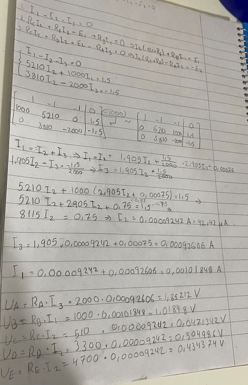 Jag hade en labb och jag fick värden Ua= 570 mv, Ub= 260 mv, Uc= 10 mv, Ud= 0,9 V , Ue= 1,26 V, men vid beräknade värde fick jag helt andra värde, jag undrar bara om jag har gjort fel någonstans.
