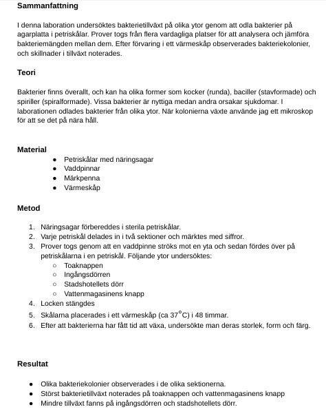 Hej! Kan jag få feedback på hur jag kan förbättra min labbrapport, och tack så mycket!