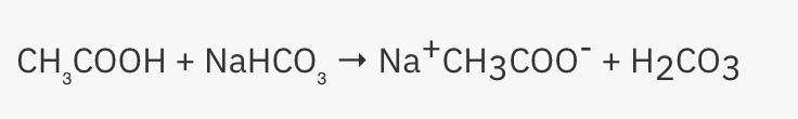 CH₃COOH + NaHCO₃ → Na+CH3COO- + H2CO3