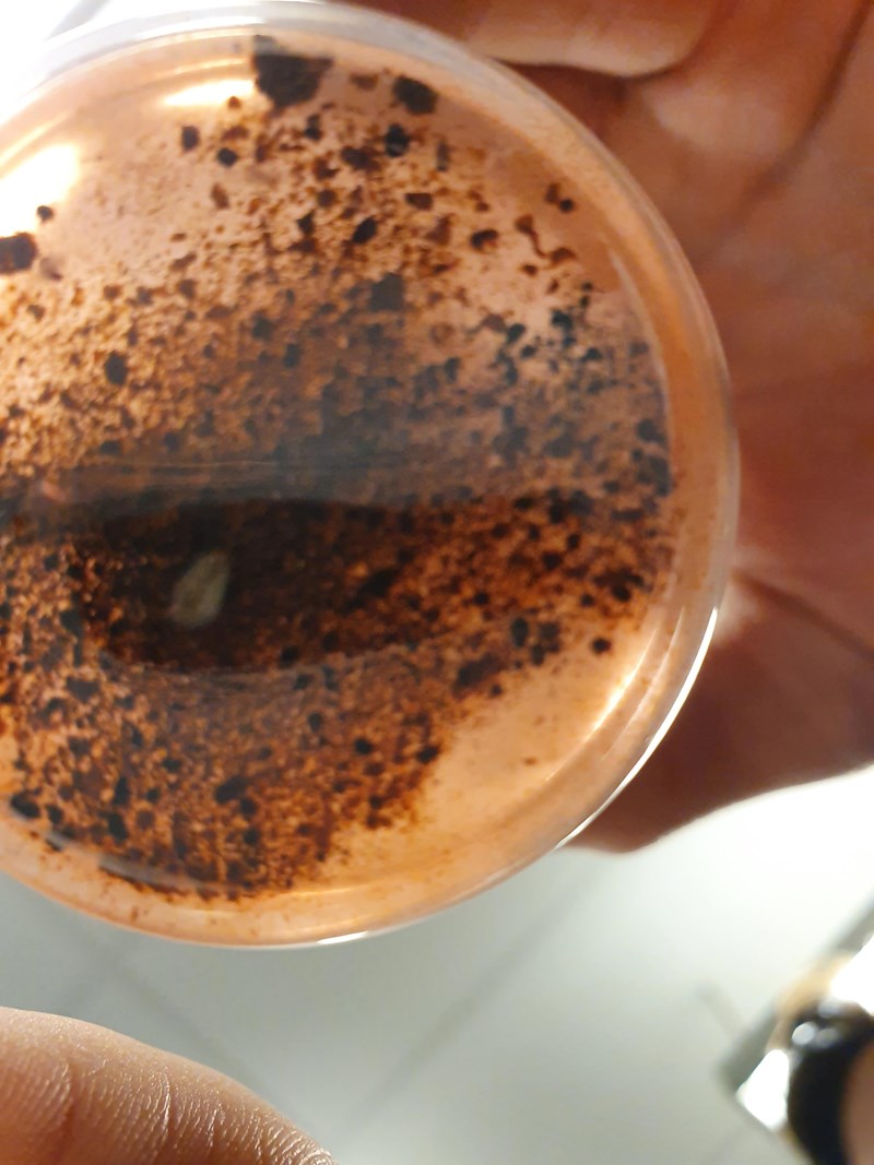 Vad tror du att det bruna materialet består av? Vad har i så fall hänt med järnet?