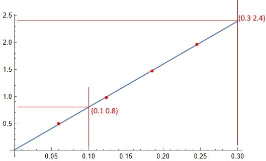 Men tanken var nog att du skulle lägga in de fyra punkterna i ett diagram och dra en linje som passar mätpunkterna.