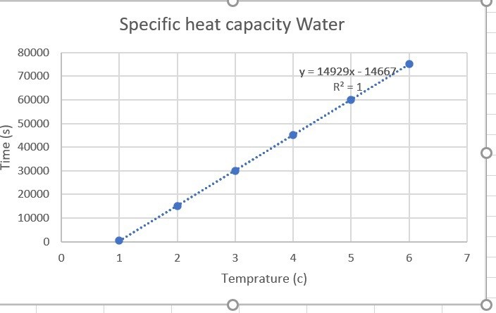 Hej; Jag har fått i uppgift att göra en laboration om specifik värmekapacitet av vatten och vi har gjort det via excel.