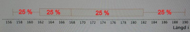 Kan någon hjälpa mig att beräkna median och variationsbredd i detta diagram, samt hur många procent som är längre än 162 cm?