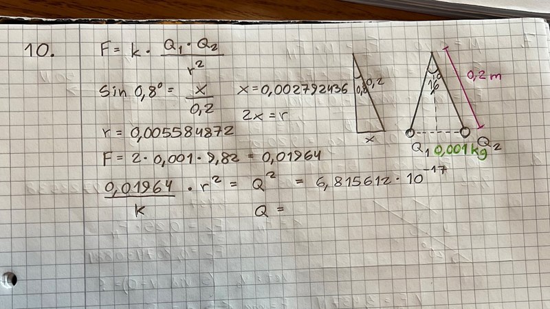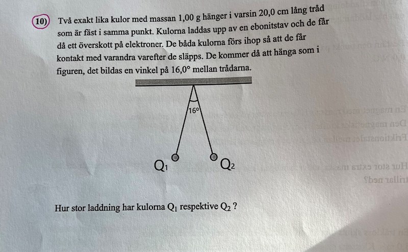 Ja, jag förstår, okej! Jag testade att ta tan0,8*0,00982, men när jag sedan använde det i coulombs lag-formeln så fick jag inte rätt svar :/