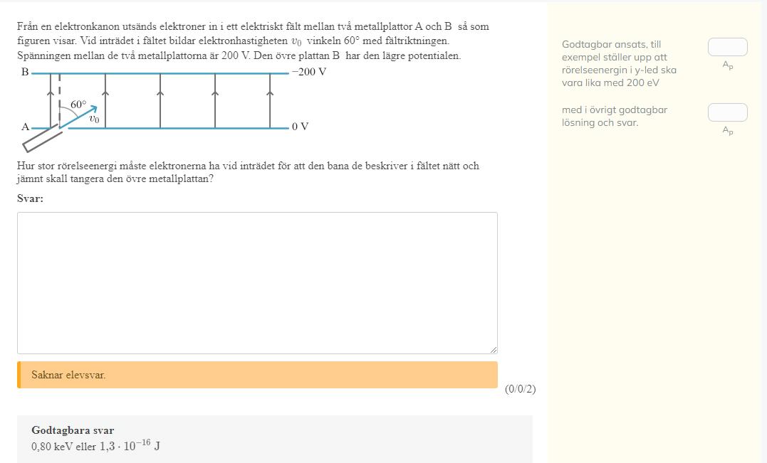 Snabb fråga, varför är det att arbetet fältet gör och energin som bör komma från hastigheten ska vara exakt likställda? Då borde väl elektronen hamna i ett "jämviktläge" direkt när den kommer ut ur fältet?