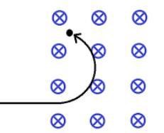 Men hur ska jag tänka i uppgiften om jag vet sträckan? Den laddade partikeln kommer känna av en kraft F i magnetfältet F= Q v B.