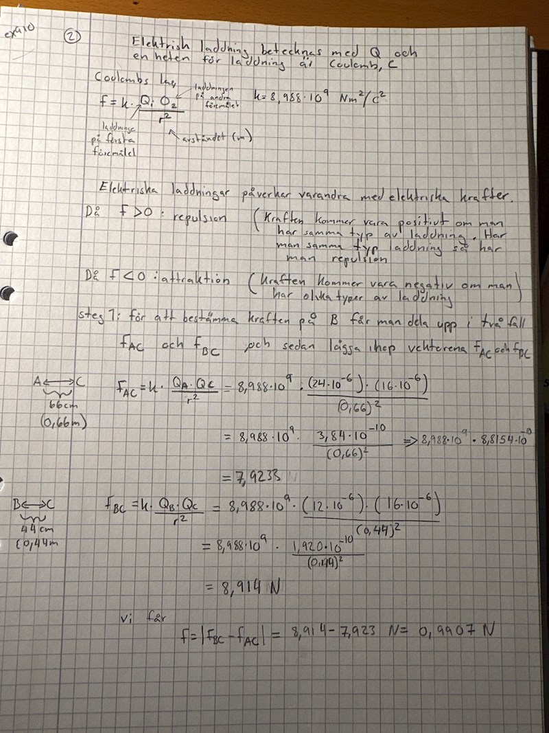 Sedan har du samma tecken på dina FAC och FBC. Då blir det klurigare att räkna. B och C har samma laddning. Det har inte A och B.