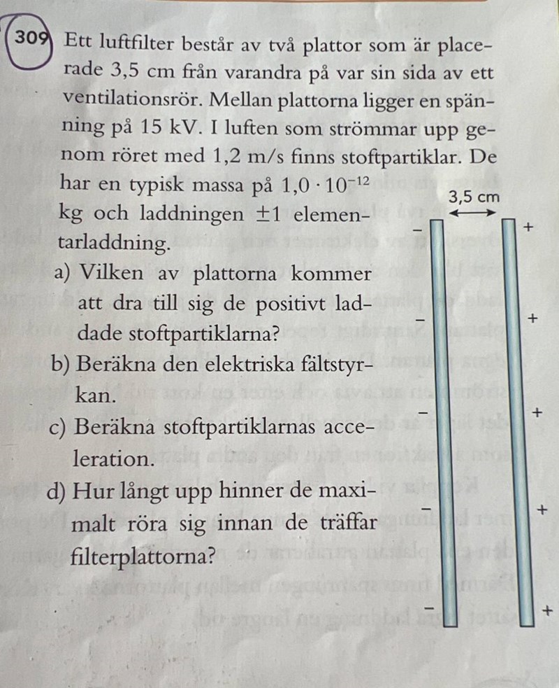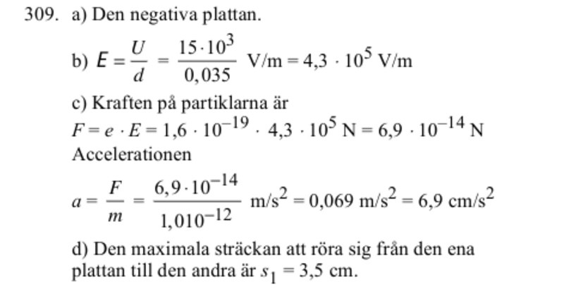 I fråga d menar man hur långt uppåt partikeln kan hinna, innan den träffar en platta.