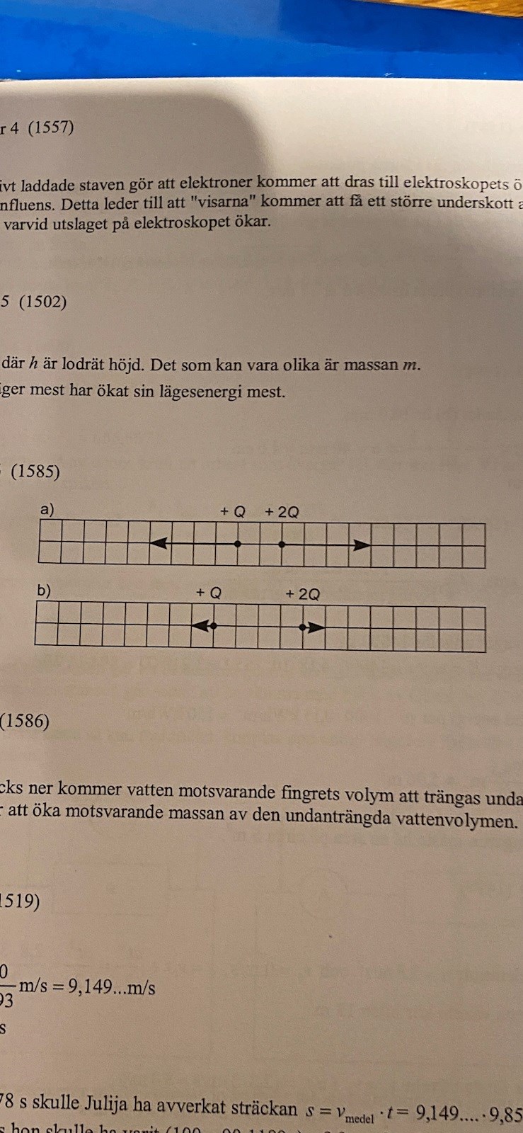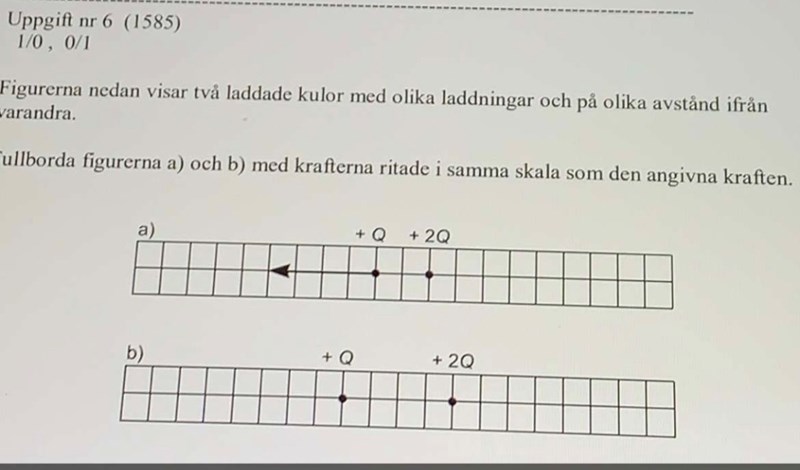 Hej, kan någon förklara för mig varför laddningarnas pilar är lika stora om den ena laddningen är dubbelt så stor som den andra på uppgift (1585)?