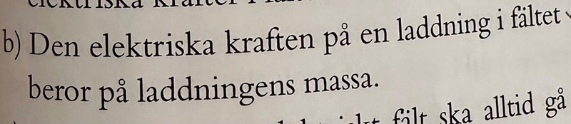 Hej jag förstår ej varför detta påstående är falskt , för att beräkna kraften multiplicerar man fältstyrkan med laddningen i columb.