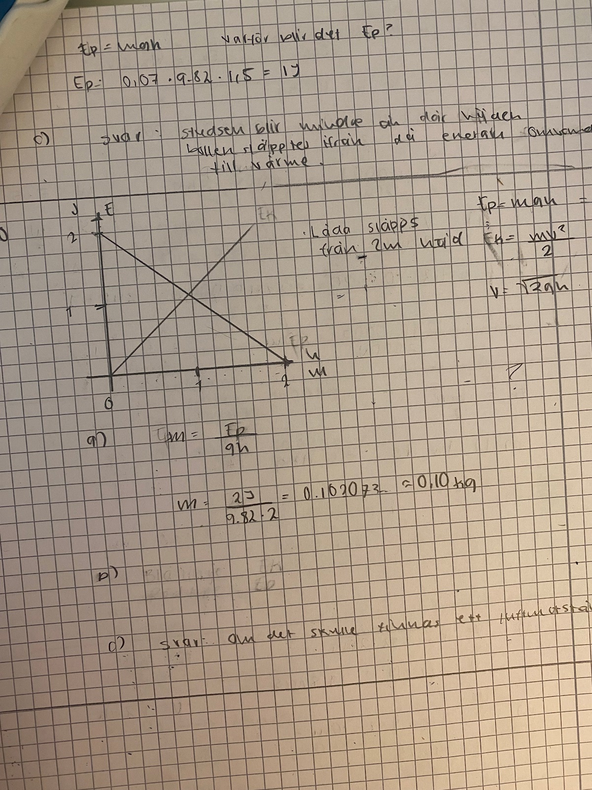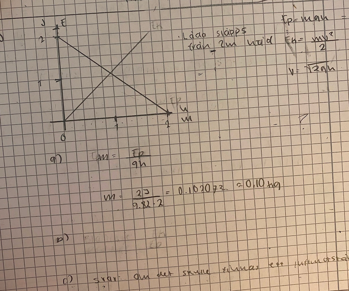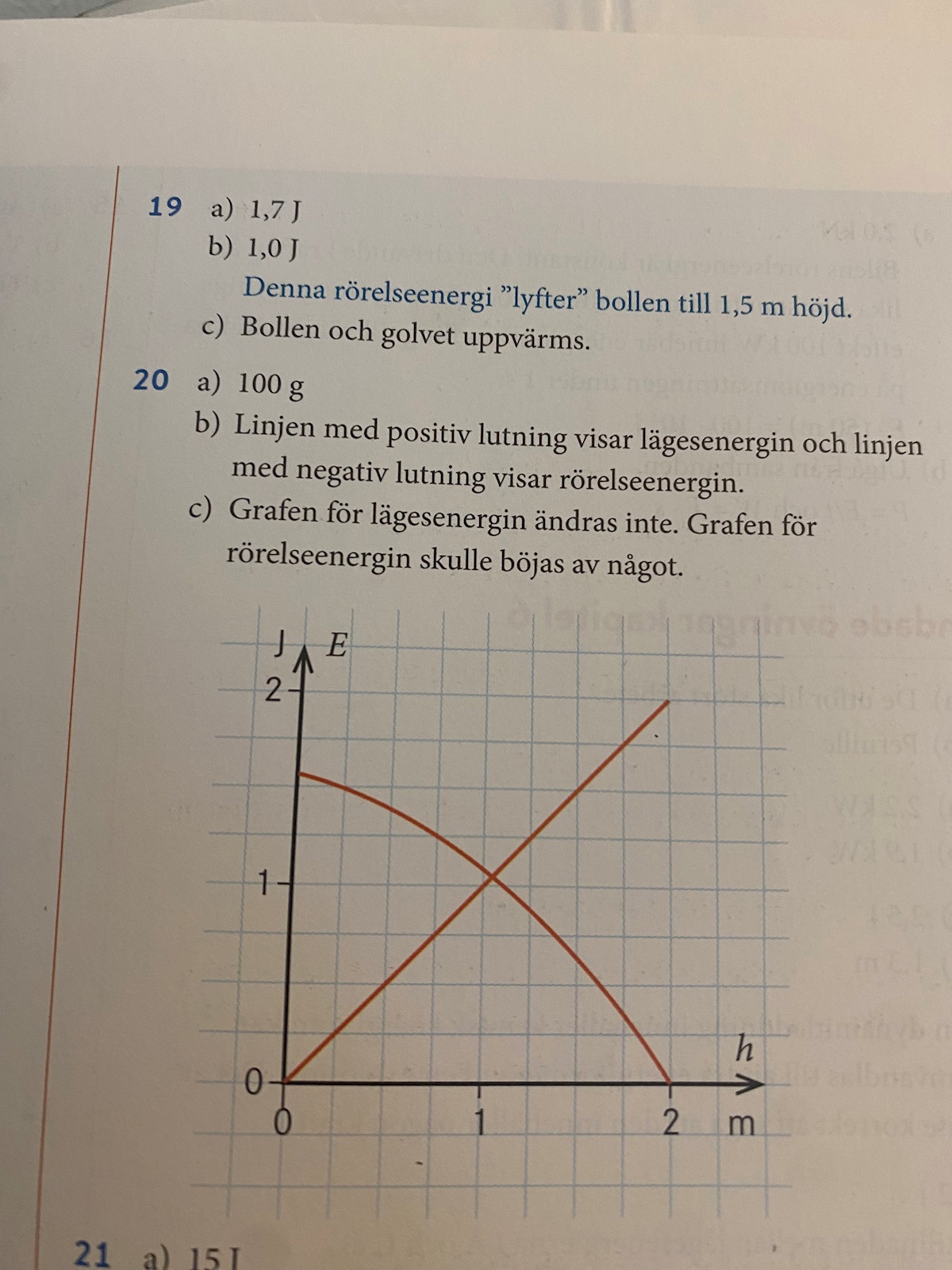 Hej, förstår inte varför den negativa linjen skulle vara rörelseenergi och den positiva lägesenergi. Tänkte att de var tvärtom då lägesenergi är ”lagrad energi” som sedan försvinner när lådan släpps och blir noll? Samt fråga c.