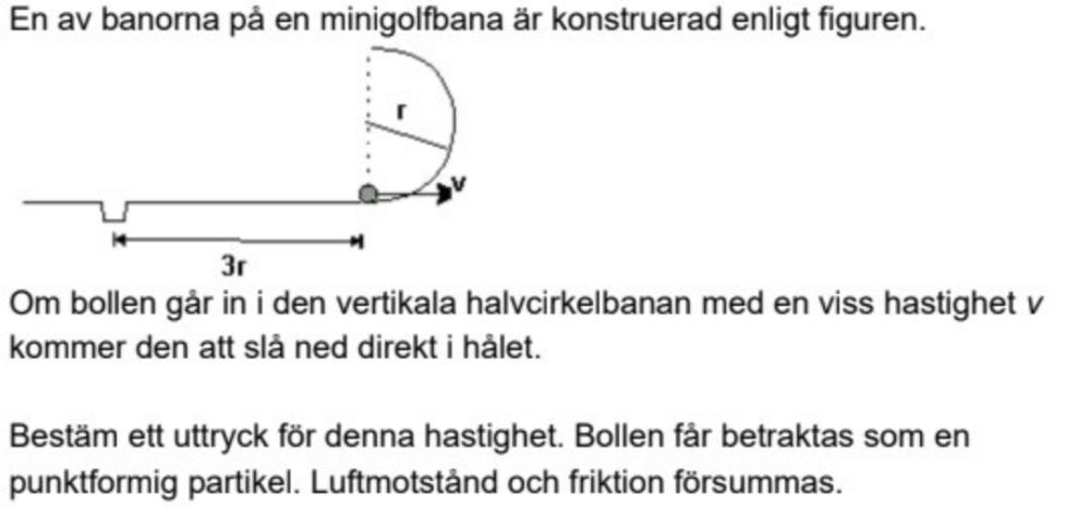 Hastigheten då bollen lämnar halvcirkelbanan är lägre än utslagshastigheten v (v1).