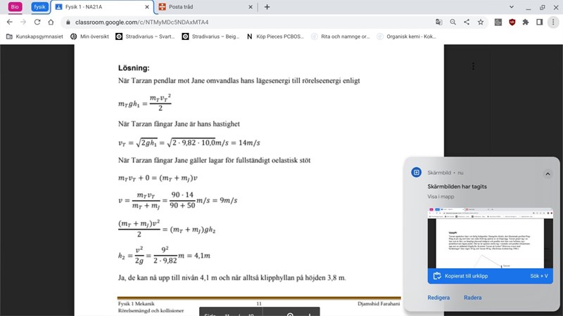 Jag förstår alla steg förutom hur man får (m1+m2)v^2/2 = (m1+m2)gh
