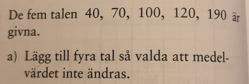 Men hur tänker jag om jag vill lägga till 4 tal utan att medelvärdet ska ändras?