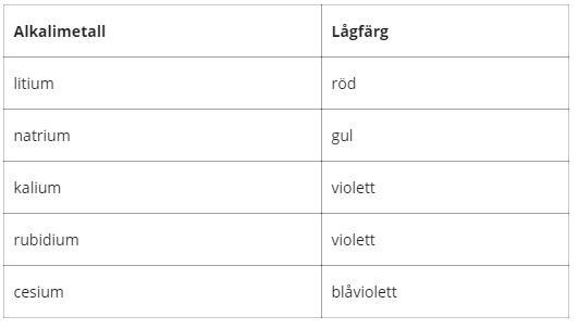 lågfärger ska ju avslöja alkalimetallerna. Men enligt tabellen så har Kalium och Rubidium samma violetta färg.