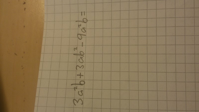 Du har uttrycket 3a2b + 3ab2 - 9a2b. Om du skriver om uttrycket så här:  3a2b - 9a2b + 3ab2 bör du kunna se att det kan skrivas som (3 - 9)a2b + 3ab2.