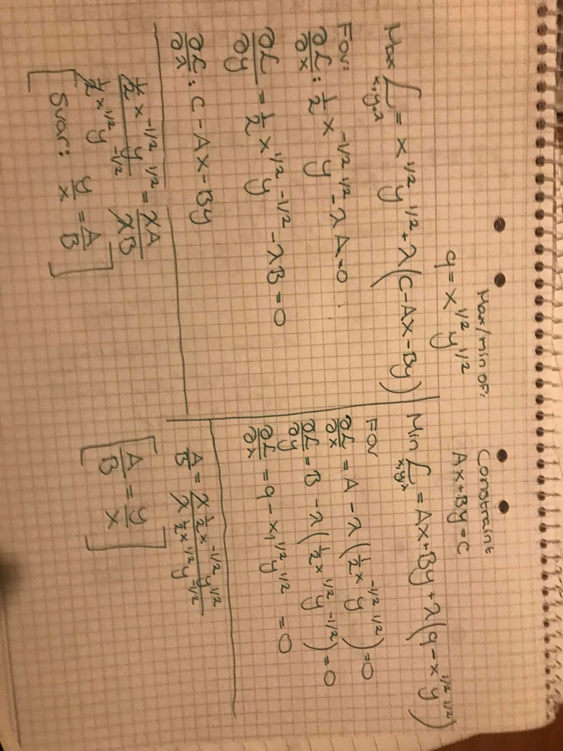 Förlåt för att jag var otydlig. Det gäller Lagrangemultiplikator och att beräkna kvoten.