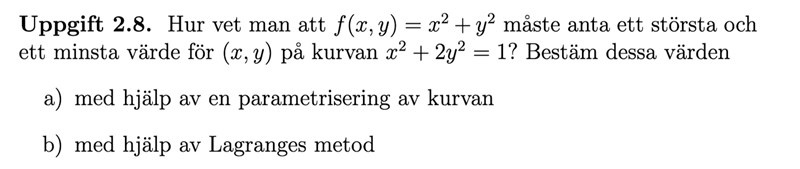 Dessa tre fall ska testas på villkoret x2+2y2 = 1
